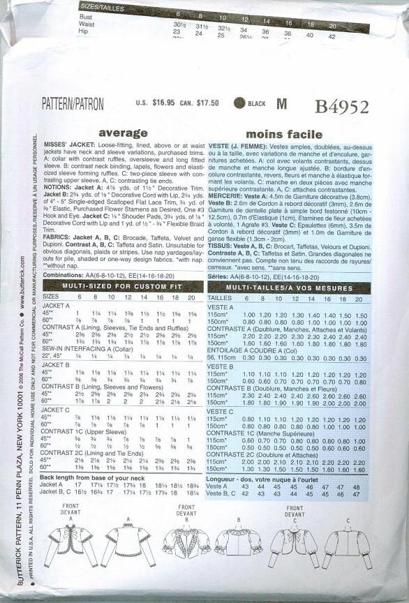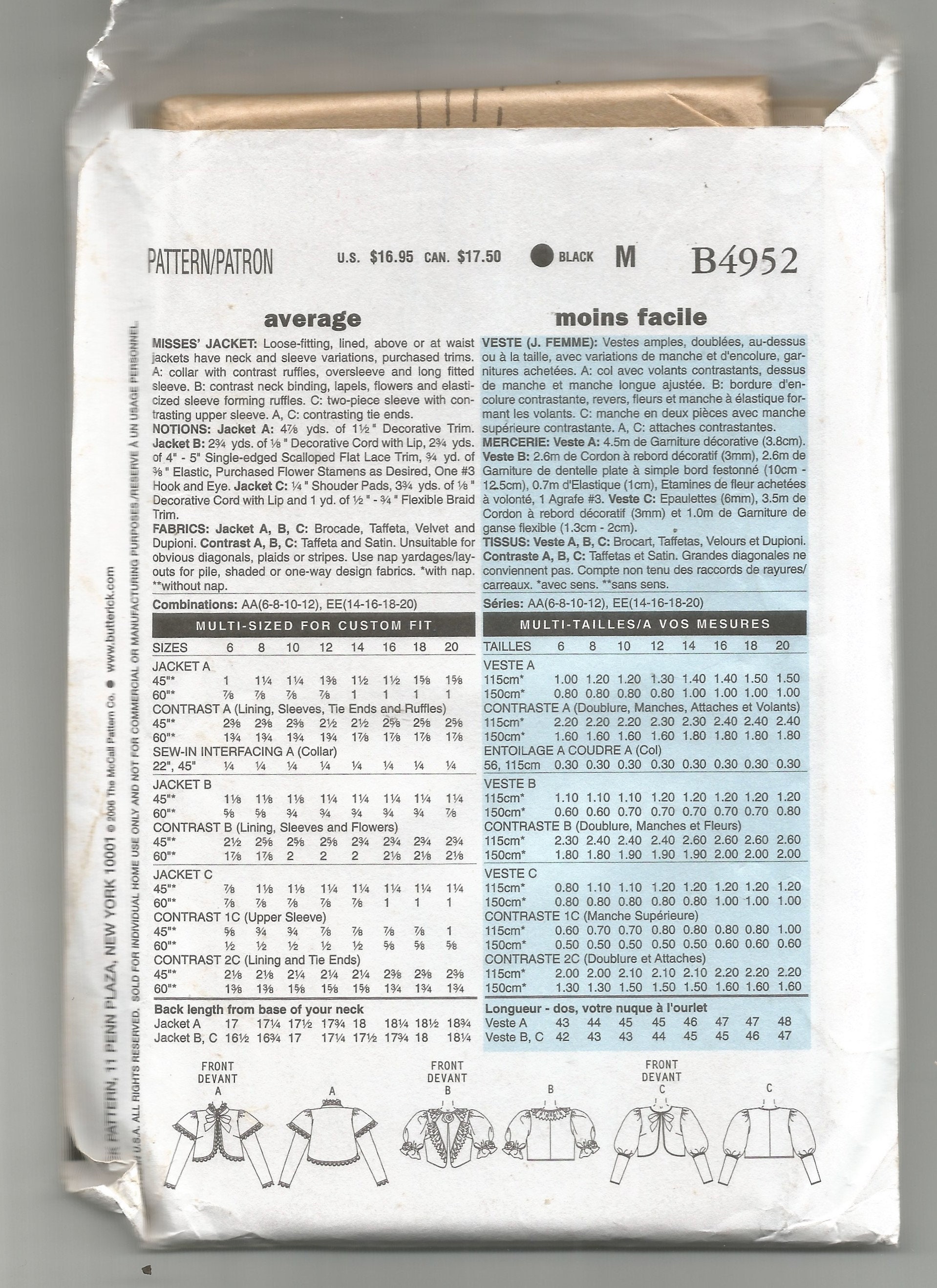 Butterick 4952 Jacke Muster Grosse 6 8 10 12 Viktorianischen Etsy De