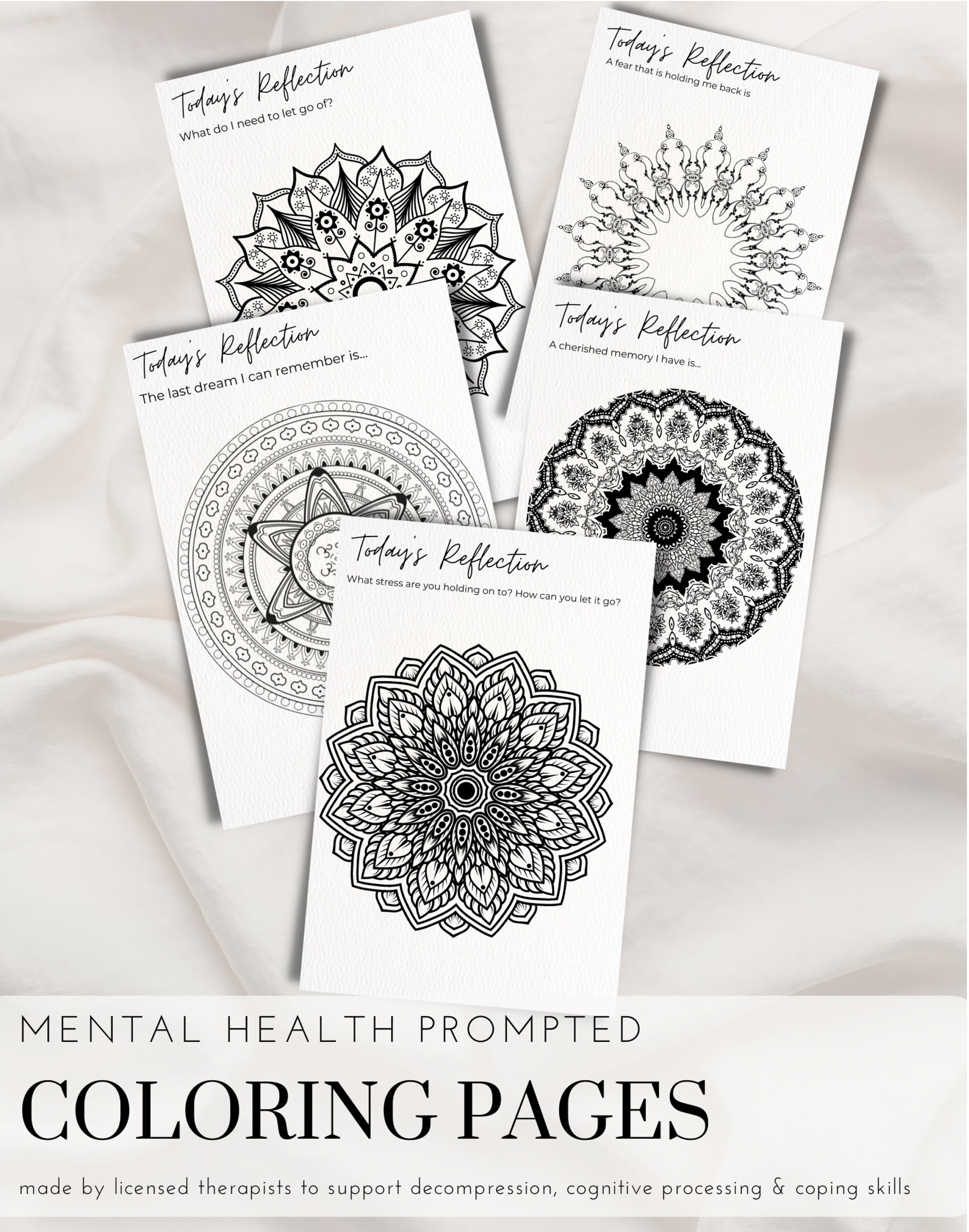 Digital Coloring Pages With Wellness Prompts Therapy Tools Etsy